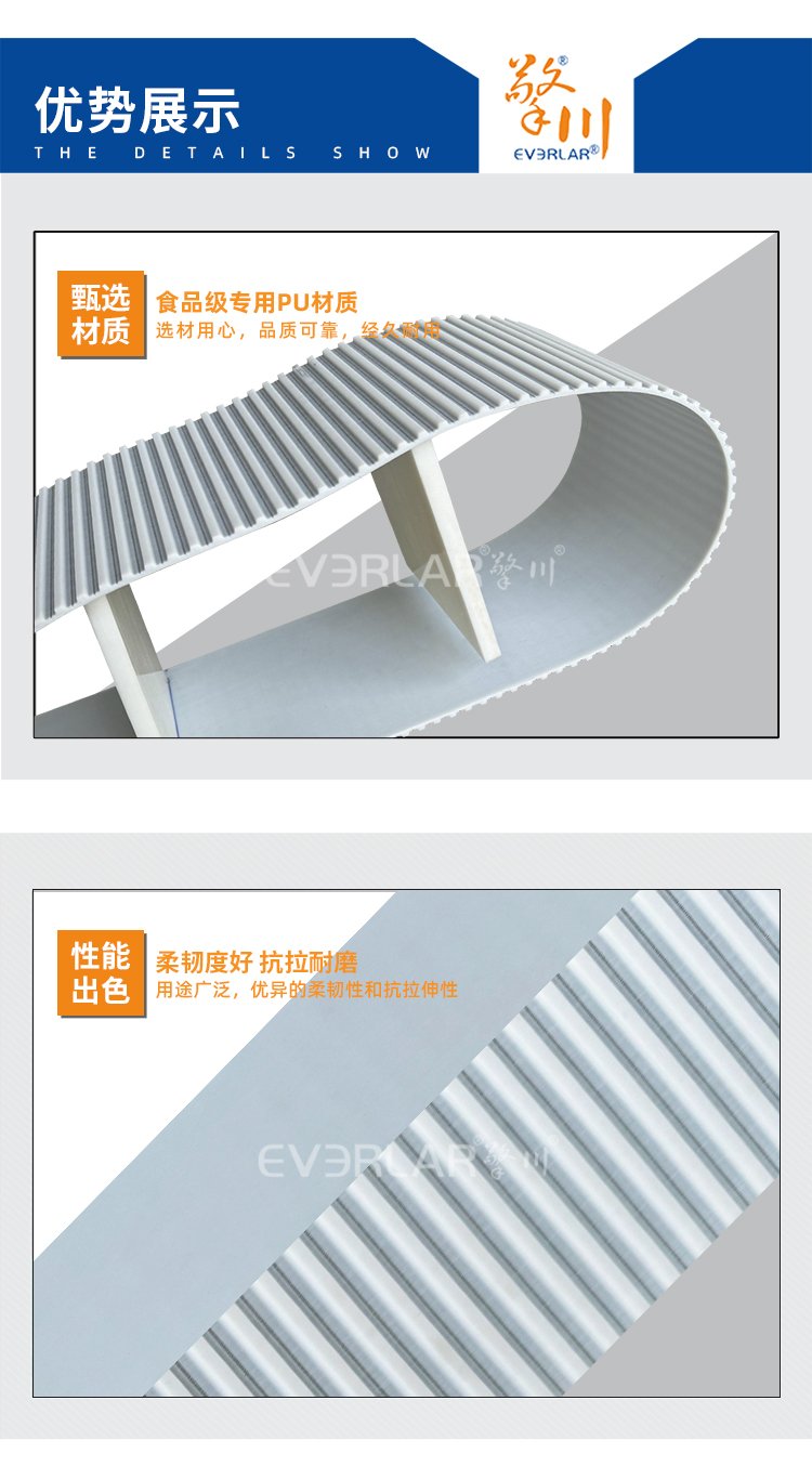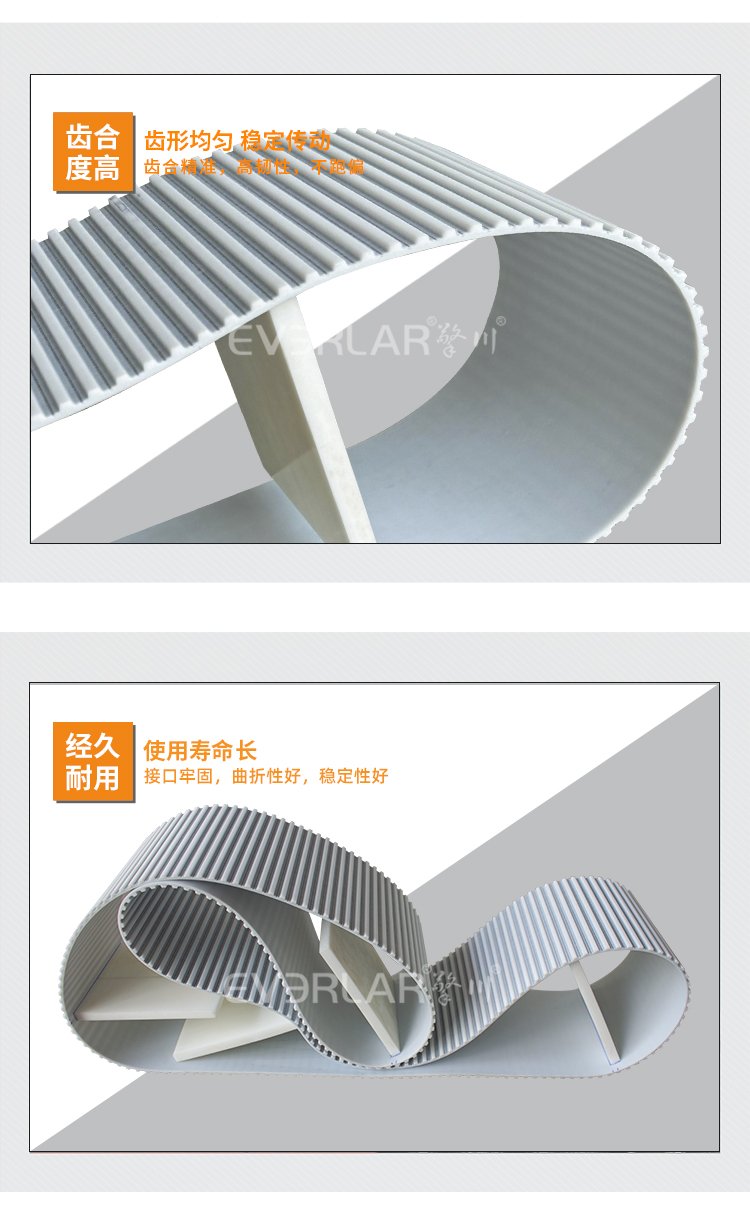 擎川EVERLA > pu同步帶 > 白色PU聚氨酯同步帶加大擋板齒形帶耐老化耐磨防滑定制工業(yè)傳動帶