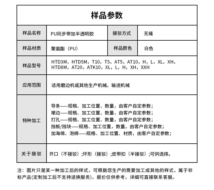 PU同步帶加半透明膠耐磨耐高溫耐腐蝕工業(yè)傳動(dòng)帶定制