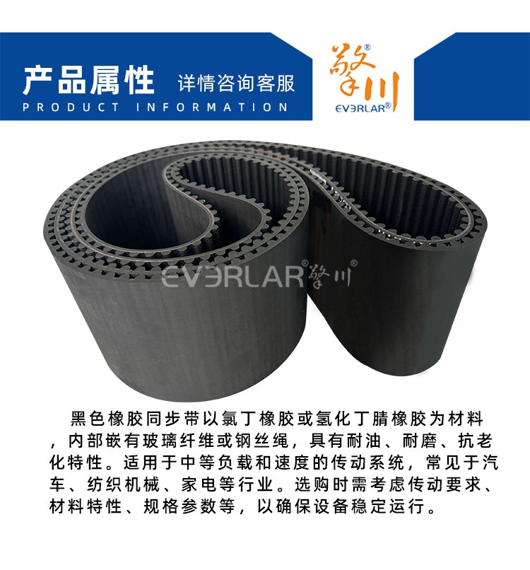 擎川EVERLA > pu同步帶 > 黑色鋼絲開口橡膠同步帶防滑耐磨耐老化工業(yè)皮帶定制